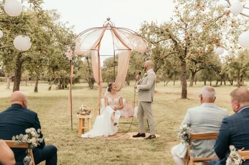 In onze historische boomgaard staan ca. 150 hoogstam appel- en perenbomen met veelal oude rassen. De afgelopen jaren hebben we samen met Noord Limburgs Groen keihard gewerkt om de boomgaard in oude luister te herstellen. Nu is het een van de mooiste plekken op ons landgoed, dat zich uitstekend leent voor een romantisch 'ja-woord'.